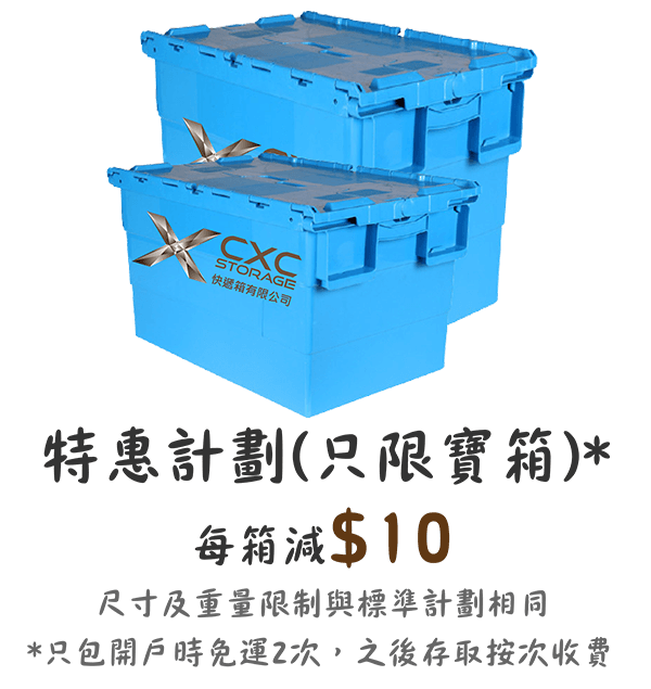 員工超過300多人,並擁有龐大車隊。研究顯示生活環境會影響我們對生活的满意度。CXC希望每位客戶都可以藉著CXC寶箱,將自己日常不需要但希望留下的物品放在安全安心的倉庫,為客戶的生活和工作空間出一分力,幫助客戶周邊有一個理想的環境。CXC寶箱,爲你所想!一按便可儲存取出,方便猶如放置在家。